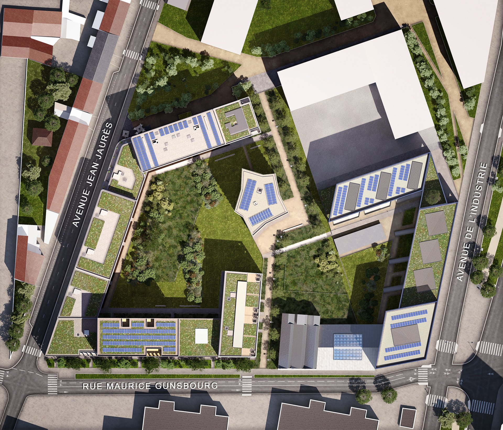 En cœurs d’îlots, la nature s’apprécie sereinement au fil des saisons. Des espaces verts, une agréable allée de peupliers, des aires récréatives et du mobilier pour se détendre favorisent les rencontres et le bien-être des petits comme des grands.